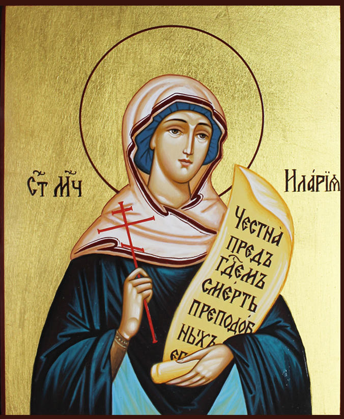 И долго затем святой Хрисанф беседовал с ними об истинном Боге; после этой беседы трибун Клавдий и жена его Илария и два сына его Иасон и Мавр уверовали в Бога; уверовали также и все сродники, друзья и весь дом их; уверовали и все воины со всеми домашними своими, — и все вместе приняли Святое Крещение. И все они поучались непрестанно у Хрисанфа, слушая усердно его речи о Господе Иисусе Христе и все за Него желали пострадать. В то время в Риме царствовал Нумериан. Когда до него дошел слух об обращении ко Христу трибуна Елавдия и его крещении со всем своим семейством и с воинами, то он повелел утопить в море Клавдия, привязавши ему на шею камень; а всех воинов и обоих сыновей Клавдия повелел усекнуть мечем. На месте кончины святых Христовых мучеников находилась заброшенная пещера, где прежде погребали умерших; очистив эту пещеру, христиане взяли ночью тела святых мучеников и положили в той пещере. К этой пещере, к мощам святых мучеников часто приходила жена Клавдиева Илария и молилась там на месте усечения своих сыновей. Однажды, когда она молилась на том месте, то была захвачена язычниками, которые повлекли и ее на истязание. Она же умоляла их, говоря: