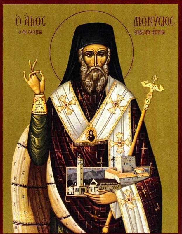 В 1576 году святой Дионисий стал епископом, с 1577 года – архиепископом Эгинским, Порским и Гидрским. Он вёл строгую аскетическую жизнь, являясь живым примером и духовным отцом для многих христиан. Множество людей искали его совета. Однако святитель спустя лишь два года после архиерейской хиротонии отказался от епископства, считая, что усиливающиеся похвалы в его адрес приведут к гордыне.
