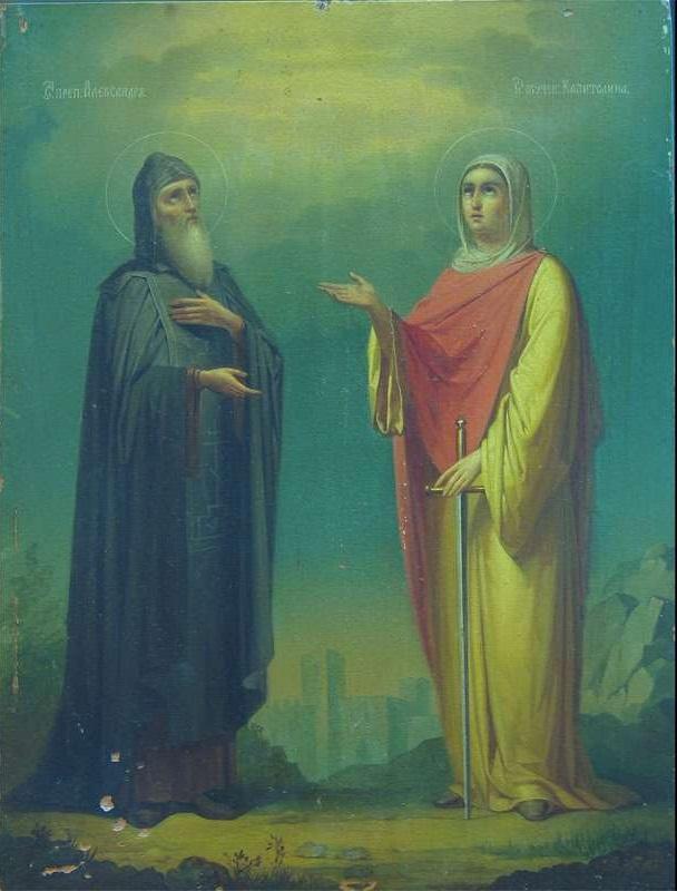 Его посвятили в сан диакона. Преподобный Александр вновь обратился к игумену с просьбой отпустить для устроения обители, рассказал о выбранном месте и своем обете пребывать на том месте. Настоятель отпустил его, благословив иконами Божией Матери Одигитрии и святителя Николая Чудотворца.