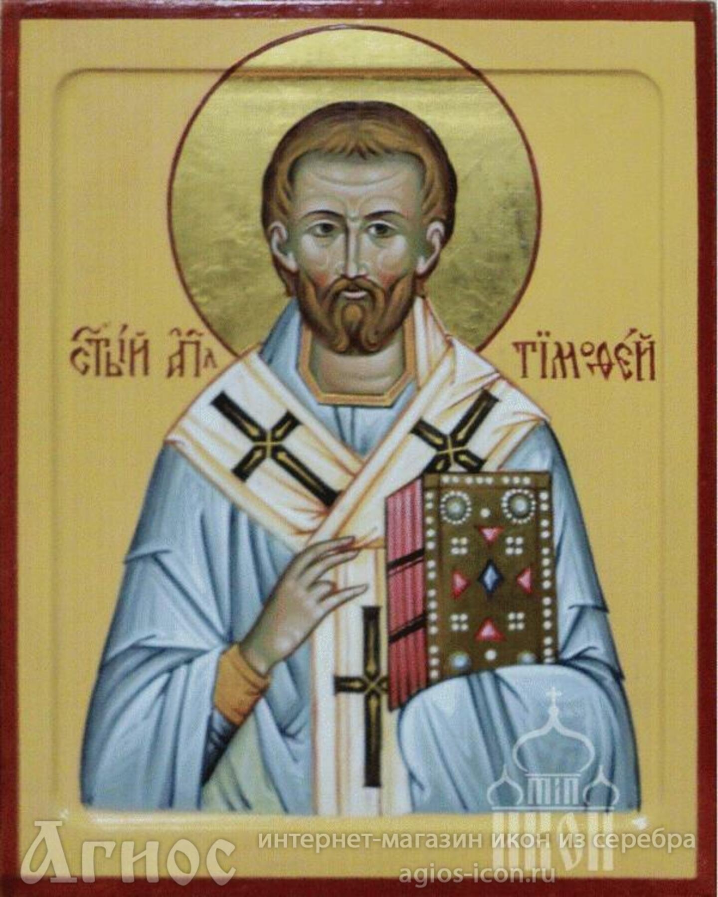 Святой апостол Тимофей происходил из Ликаонского города Листры в Малой Азии. Он был обращен ко Христу в 52 году святым апостолом Павлом (+ ок. 67; память 29 июня). Когда апостолы Павел и Варнава посетили впервые Ликаонские города, апостол Павел в Листре исцелил хромого от рождения, и многие жители города уверовали во Христа, среди них был и будущий апостол, юноша Тимофей, его мать Евника и бабка Лоида (Деян. 14,6 - 12; 2 Тим. 1, 5). Семена веры, посеянные апостолом Павлом в душе святого Тимофея, принесли обильный плод. Он стал ревностным учеником апостола, а впоследствии его неотлучным спутником и сотрудником в проповеди Евангелия. Апостол Павел любил святого Тимофея и называл его в Посланиях своим возлюбленным сыном, с благодарностью вспоминая его верность и преданность. Он писал Тимофею: "Ты последовал мне в учении, житии, расположении, вере, великодушии, любви, терпении, в гонениях, страданиях..." (2 Тим. 3, 10-11). В 65 году апостол Павел рукоположил апостола Тимофея во епископа Ефесской Церкви, которой святой Тимофей управлял 15 лет. Святой апостол Павел, находясь в Риме в темнице и зная, что ему предстоит мученический подвиг, вызвал к себе верного ученика и друга апостола Тимофея на последнее свидание (2 Тим. 4, 9).