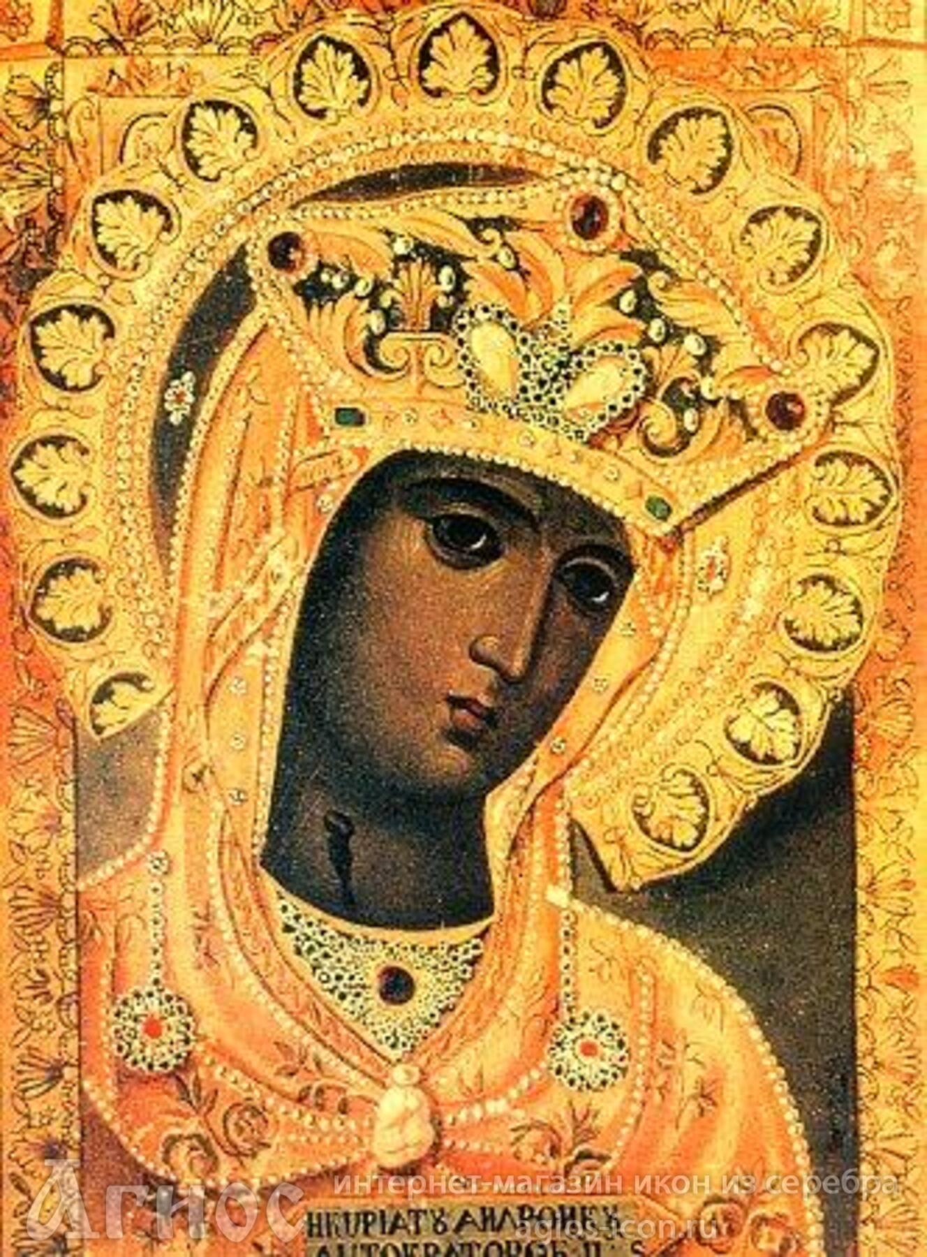 Андрониковская икона Божией Матери, известная также под именами Монемвасийской и Греческой, – родовая святыня греческого императора Андроника III Палеолога, по преданию, одна из написанных апостолом и евангелистом Лукой. По первому сохранившемуся документальному свидетельству об иконе, в 1347 году Андроник пожертвовал ее Монемвасийской обители в Морее, где она пребывала до начала XIX-го столетия. После нападения на Грецию в 1821 году турецких войск, настоятель монастыря, епископ Агапий, пытаясь спасти чудотворную Андрониковскую икону, скрылся с нею в г. Патрас. Перед смертью Агапий завещал эту святыню своему родственнику, русскому генеральному консулу Н. И. Влассопуло, сын которого, А. Н. Влассопуло, в 1839 году переслал икону из Афин в Одессу с письмом на Высочайшее имя для препровождения ее в Петербург императору Николаю Павловичу. С 1839 по 12 мая 1868 года Андрониковская икона находилась в Зимнем дворце, а с 12 мая 1868 года по 16 апреля 1877 г. – в Троицком соборе, что на Петербургской стороне. В 1877 году чудотворная икона была перенесена в Казанский женский монастырь близ города Вышний Волочок Тверской епархии. В 1984 г. икона была украдена и нынешнее ее местонахождение неизвестно.