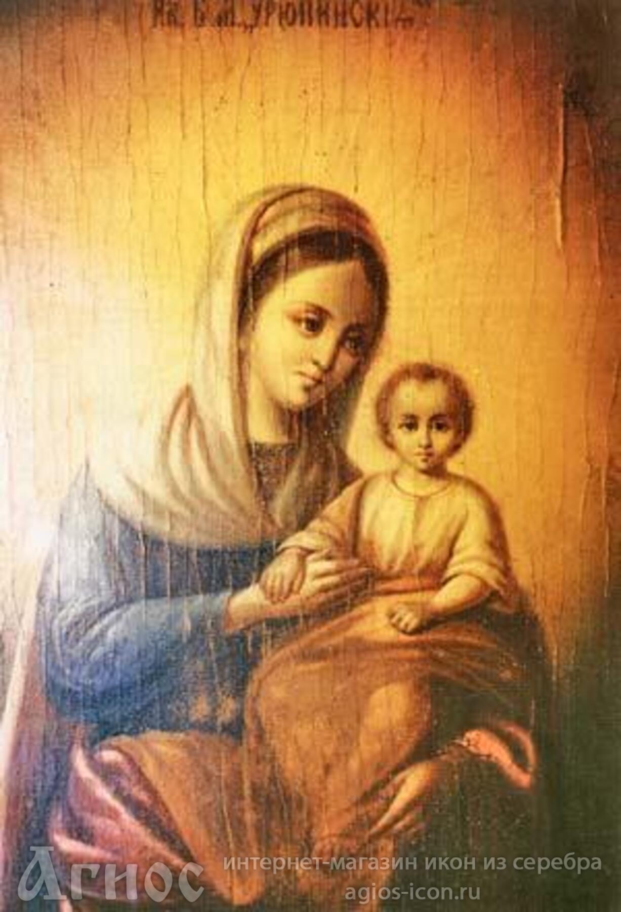 Урюпинский образ Божией Матери находился в станице Урюпинской, расположенной на реке Хопре. Он хранился в местном храме в честь Покрова Пресвятой Богородицы. Явление чудотворной иконы произошло 8-го июня 1827 года, после чего она несколько лет хранилась в келье одной христианской подвижницы – Ирины Лазаревой, а потом была перенесена в станицу Урюпинскую сначала на церковную площадь напротив Покровской церкви, а в 1854 году – в сам храм. В Покровской церкви она хранилась в резном позолоченном киоте.