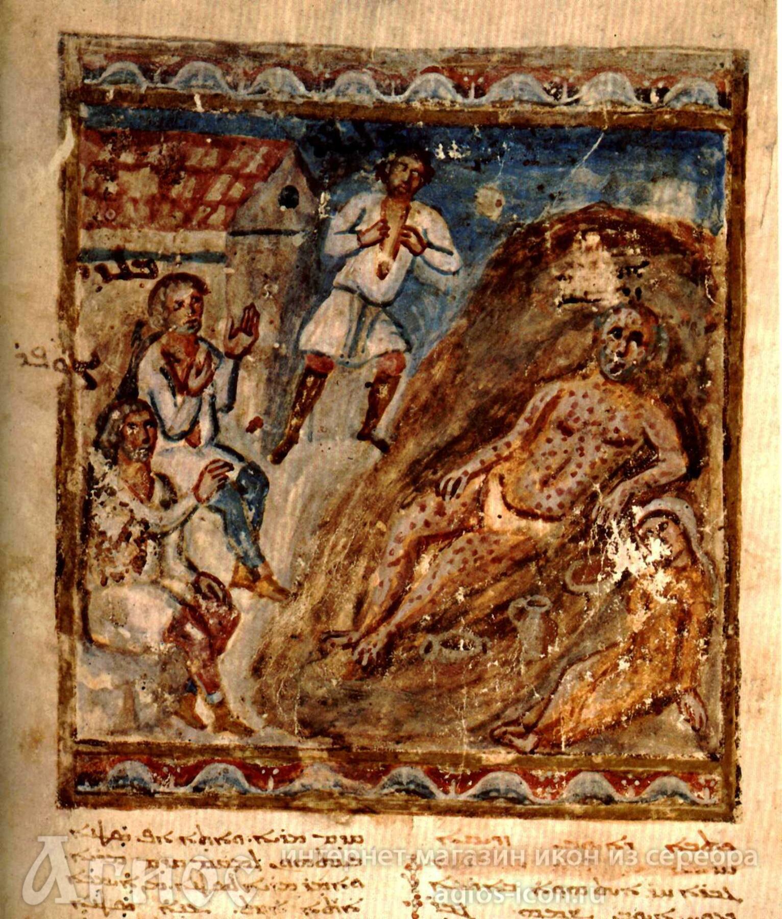 Когда Ангелы Божий вновь предстали перед Господом и среди их сатана, то диавол сказал, что Иов праведен, пока сам невредим. Тогда Господь возвестил: "Я попускаю тебе сделать с ним, то хочешь, только душу его сбереги". После этого сатана поразил раведного Иова лютой болезнью - проказой, которая покрыла его с ног до головы. Страдалец принужден был выселиться из общества людей, сел вне города на куче пепла и глиняным черепом скоблил свои гнойные раны. Все друзья и знакомые оставили его. Жена его принуждена была добывать себе пропитание, трудясь и скитаясь из дома в дом. Она не только не поддерживала своего мужа в терпений, но думала, что Бог наказывает Иова за какие-либо тайные грехи, плакала, роптала на Бога, укоряла и мужа и наконец посоветовала праведному Иову похулить Бога и умереть. Праведный Иов тяжко скорбел, но и в этих страданиях остался верен Богу. Он отвечал жене: "Ты говоришь, как одна из безумных. Неужели доброе мы будем принимать от Бога, злого не будем принимать?" И не согрешил праведный ни в чем перед Богом.