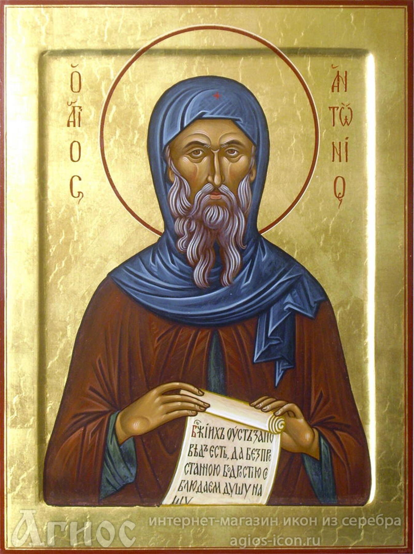 Антоний Великий родился в Египте около 250 года от благородных и богатых родителей, воспитавших его в христианской вере. Восемнадцати лет он лишился своих родителей и остался один с сестрой, которая была на его попечении. Однажды он шел в церковь и размышлял о святых апостолах, как они оставили все, чтобы идти за Господом. Входит в храм и слышит евангельские слова: «Если хочешь быть совершенным, иди, продай имение твое и раздай нищим, и будешь иметь сокровище на Небе, и иди вслед за Мной» (Мф. 19, 21). Эти слова поразили Антония, как бы сказаны были Господом лично ему.