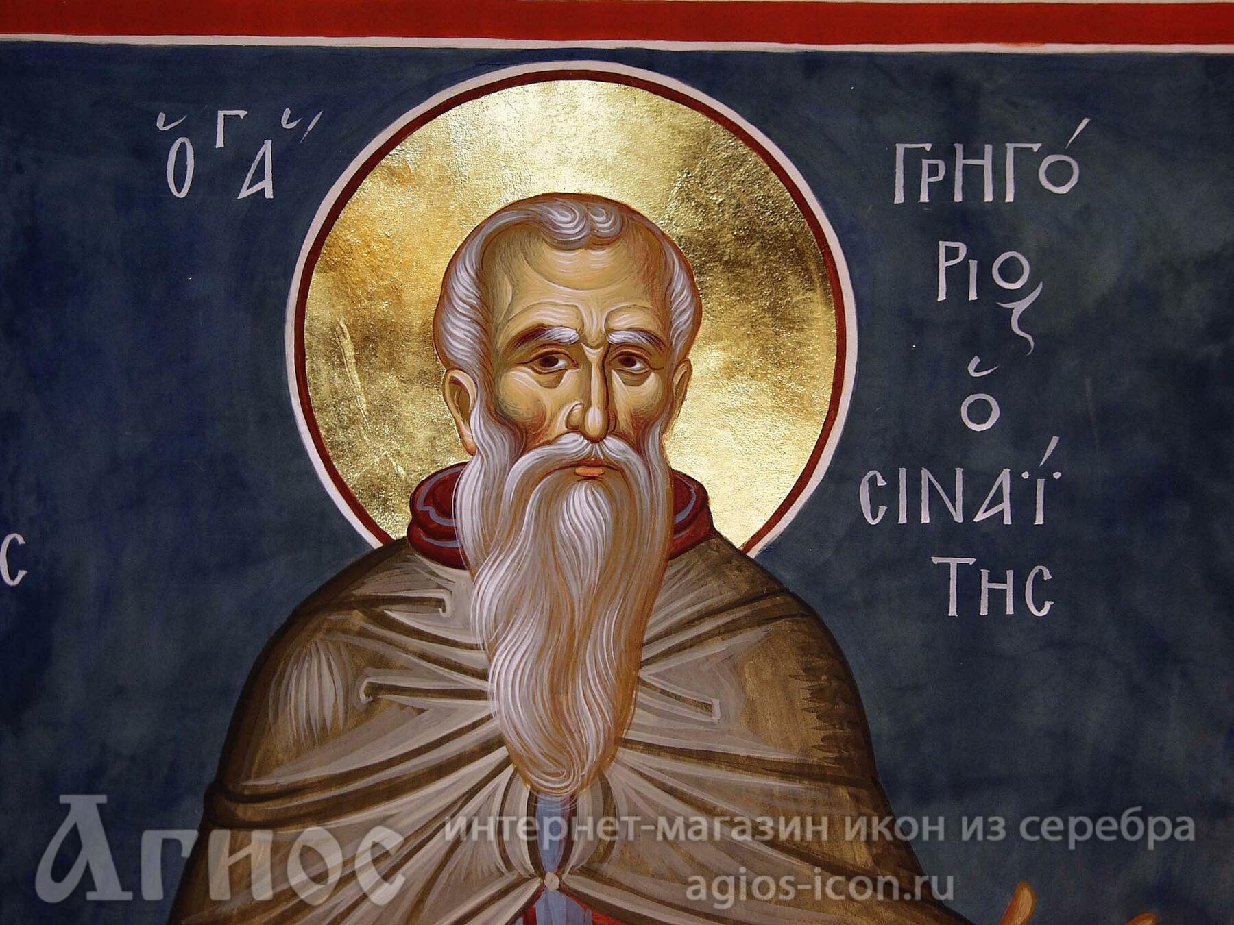 Преподобный Григорий Синаит родился около 1268 года в приморском поселении Клазомены около г. Смирны (Малая Азия) от богатых родителей. Около 1290 года он был взят в плен агарянами и отправлен в Лаодикию. После освобождения преподобный прибыл на о. Кипр, где постригся в иноческий чин. Затем он отправился на Синайскую гору и принял там великую схиму. Исполняя послушания повара и пекаря, преподобный был также искусным писцом и превосходил всех в чтении и знании Священных и отеческих книг. Строгость его жизни (пост, бдение, псалмопение, стояние на молитве) одних приводила в изумление, а у других вызывала зависть. Удалившись из монастыря, преподобный посетил Иерусалим. Некоторое время он жил на о. Крите, а затем обошел на Афоне все монастыри и всех подвижников. Таким путем он вобрал многовековой опыт иноческой жизни древнейших обителей. Лишь после этого преподобный Григорий Синаит построил себе в уединенном месте исихостерий - келлию для безмолвия и беспрепятственных занятий умной молитвой, соединенной с тяжелым иноческим трудом.