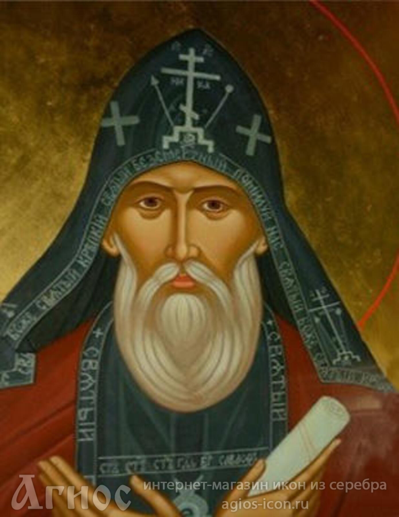 Тело схимника-ктитора было положено в нижней Пантелеимоновской церкви двухэтажного собора в честь иконы Божией Матери "Млекопитательницы" - под алтарем северного придела, посвященного святому Василию Блаженному.