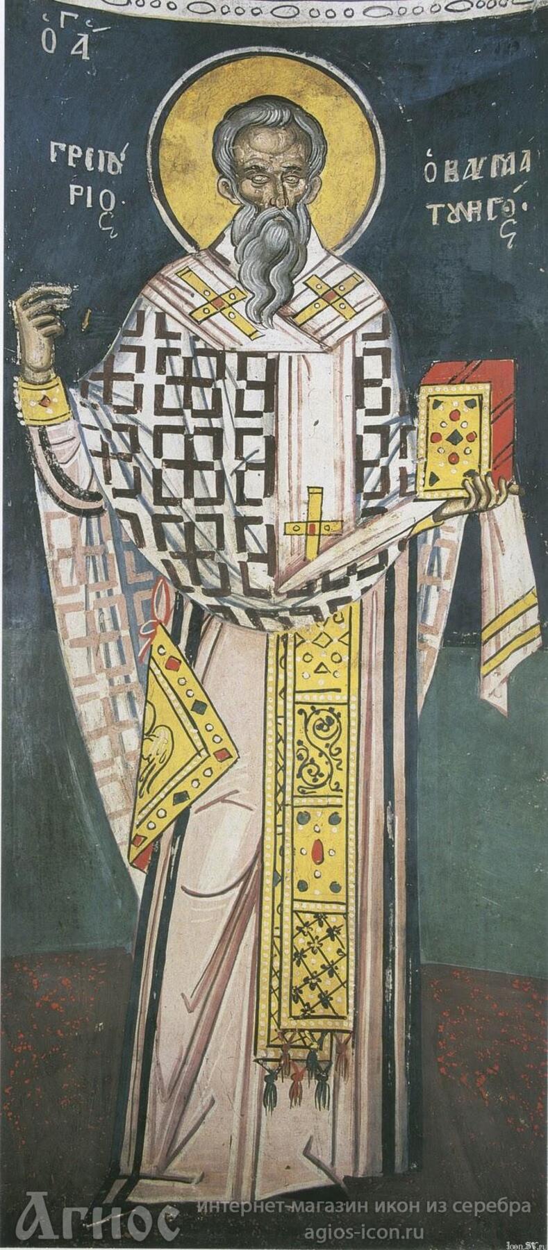 Святитель Григорий Чудотворец, епископ Неокесарийский, родился в языческой семье в городе Неокесарии на севере Малой Азии. Несмотря на прекрасное образование, он не нашел удовлетворения в мыслях древних философов и обратился к христианству. Для продолжения образования он отправился в Александрию, где стал учеником знаменитого преподавателя и святого пресвитера Оригена. Пребывание в училище принесло ему понимание Слова Божьего и крещение.