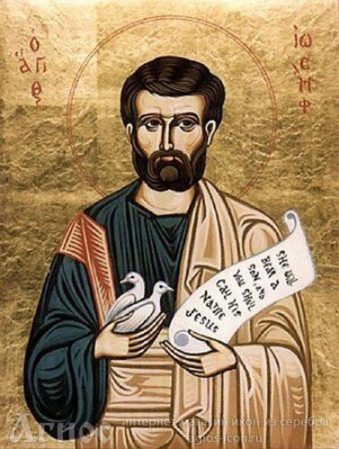 Святой Иосиф Обручник происходил из рода царя Давида. В первом браке у него было четыре сына и две дочери. Овдовев, святой Иосиф жил в строгом воздержании. Восьмидесятилетним старцем святой Иосиф был избран первосвященниками хранителем девства Пресвятой Богородицы, давшей обет безбрачия. О воплощении через Нее Сына Божия ему возвестил Ангел. Святой Иосиф присутствовал при поклонении пастырей Новорожденному Богомладенцу и при поклонении Ему волхвов. По указанию Ангела он бежал с Матерью Божией и Богомладенцем Иисусом в Египет, спасая Их от гнева царя Ирода. В Египте он жил с Девой Марией и Богомладенцем, зарабатывая на Их пропитание трудом плотника. Скончался святой Иосиф в возрасте около ста лет.