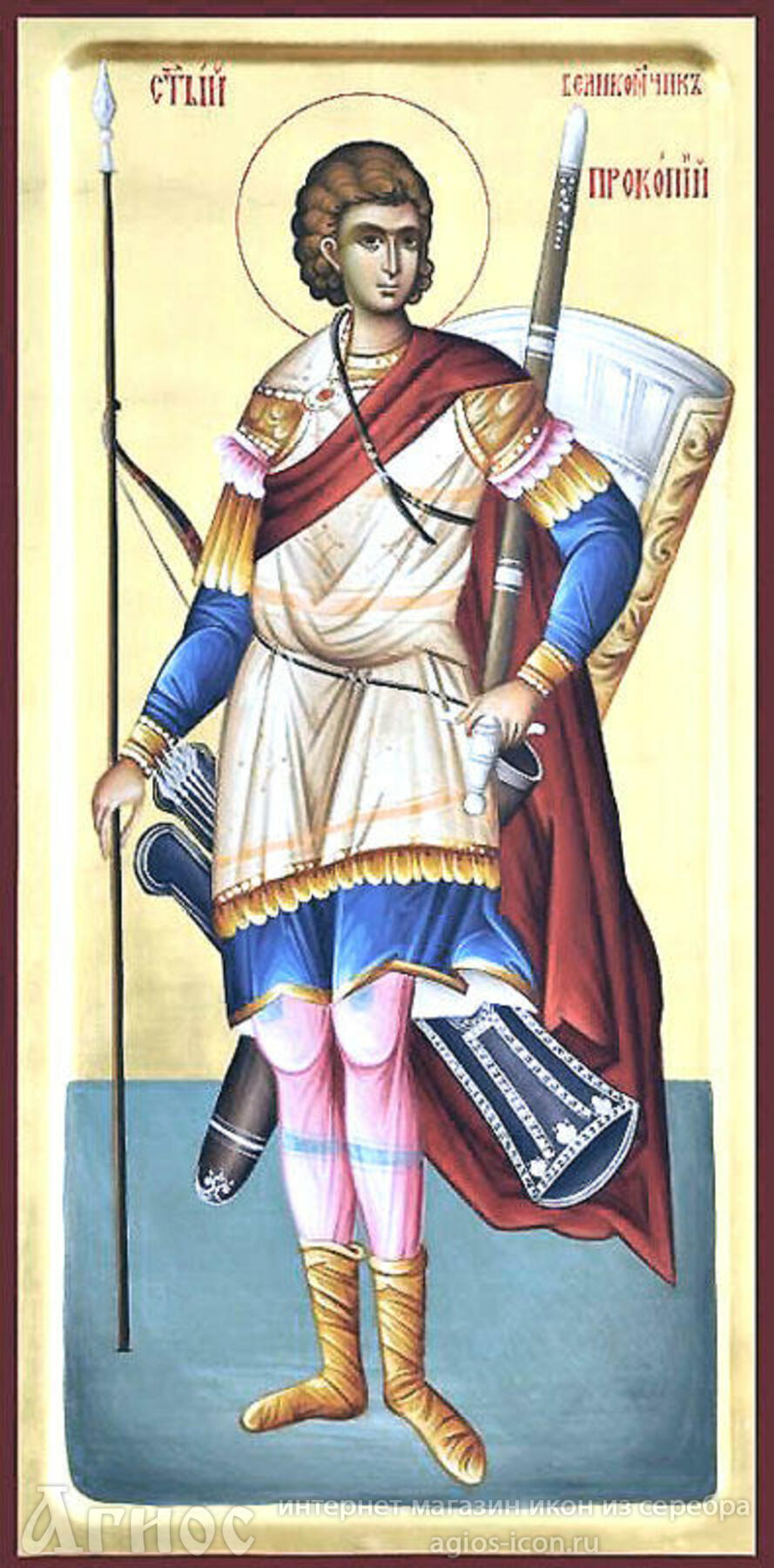 Святой великомученик Прокопий, в миру Неаний, родом из Иерусалима, жил и пострадал в царствование императора Диоклитиана (284-305). Отец его, знатный римлянин, по имени Христофор, был христианином, но мать святого, Феодосия, оставалась язычницей. Рано лишившись отца, юный отрок был воспитан матерью. Получив прекрасное светское образование, он был представлен Диоклитиану в первый год его вступления на престол и быстро продвинулся по службе. К 303 году, когда было воздвигнуто открытое гонение на христиан, Неаний был послан проконсулом в Александрию с повелением беспощадно преследовать Церковь Божию. Но на пути в Египет, близ сирийского города Апамеи, Неанию было явление Господа Иисуса Христа, как некогда Савлу на пути в Дамаск. Божественный голос возвестил: "Неаний, и ты идешь на Меня?" Неаний спросил: "Кто Ты, Господи?" - "Я - распятый Иисус, Сын Божий". В то же время в воздухе появился сияющий крест. После видения Неаний ощутил в своем сердце неизреченную радость и духовное веселие и превратился из гонителя в ревностного последователя Христа. С тех пор Неаний возлюбил христиан и победоносно сражался только против варваров-язычников.